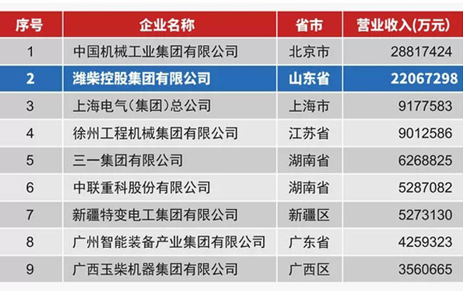 2018年7月13日,第十四届“中国机械工业百强、汽车工业三十强企业信息发布会”在山东临沂召开。潍柴集团以年营业收入2206.7亿元,位列2017年中国机械百强第2名。