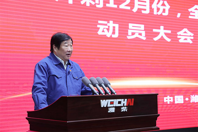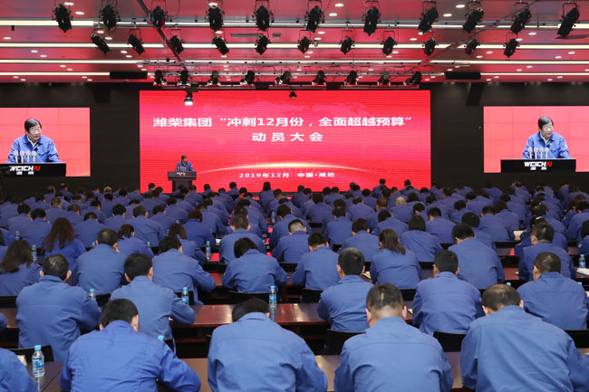 12月1日下午两点,潍柴集团召开“冲刺12月份 全面超越预算”动员大会。会上,谭旭光发出动员令,号召全体干部员工向着12月份产销10万台的目标冲刺!