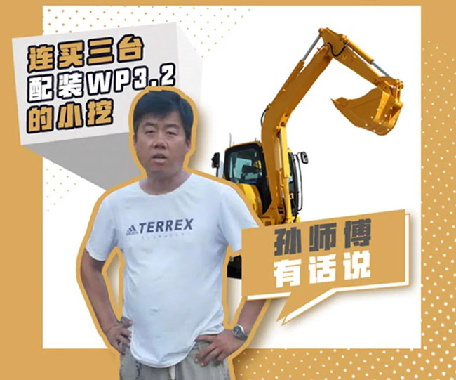 来自山东滨州的孙师傅,先后购买了3台搭载潍柴WP3.2发动机的挖掘机,用于修路、清槽、挖排水沟、种树等。提到WP3.2的表现,孙师傅赞不绝口。