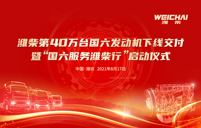 2021年8月17日14:00,潍柴第40万台国六发动机下线交付暨“国六服务潍柴行”启动仪式在山东潍坊举行,闪电新闻现场直播,敬请关注!