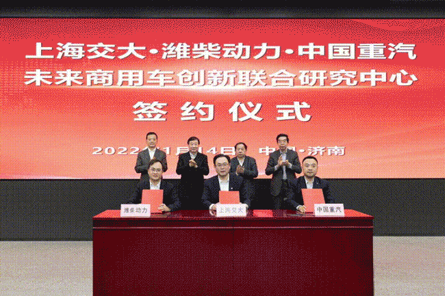 1月14日,上海交大、潍柴动力、中国重汽未来商用车创新联合研究中心签约及揭牌仪式在济南举行。中国工程院院士、上海交通大学校长林忠钦,中国工程院院士、上海交通大学智慧能源研究院院长黄震及山东重工集团党委书记、董事长谭旭光出席座谈会并见证签约。