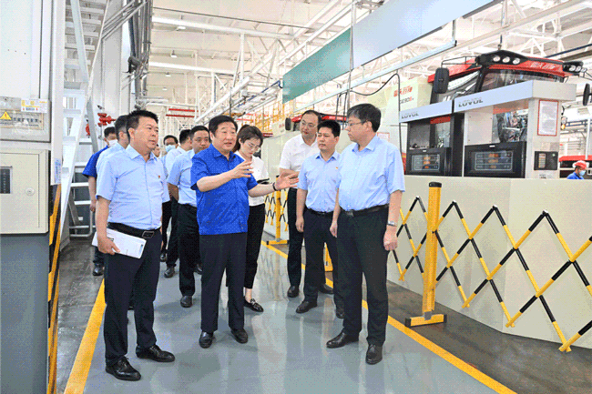 谭旭光先后到轮式机工厂、拖拉机工厂调研,详细了解当前的市场需求、生产保障、服务开展情况。谭旭光说,眼下正值“三夏”大忙季节,农机市场需求创历史新高,潍柴雷沃要发挥领头羊作用,战高产、保订单,以科技助推机收减损和夏粮颗粒归仓。