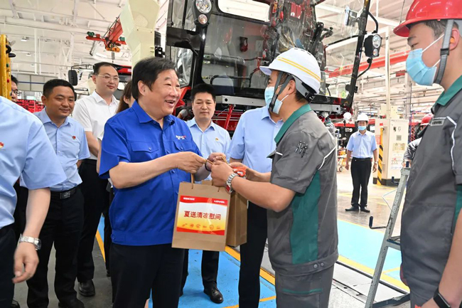 谭旭光说,今年潍柴雷沃一直处于高产状态,大家都非常辛苦!我们领导干部要为一线员工提供心贴心服务,特别是要做好高温期间防暑降温工作,让员工工作在雷沃、幸福在雷沃!