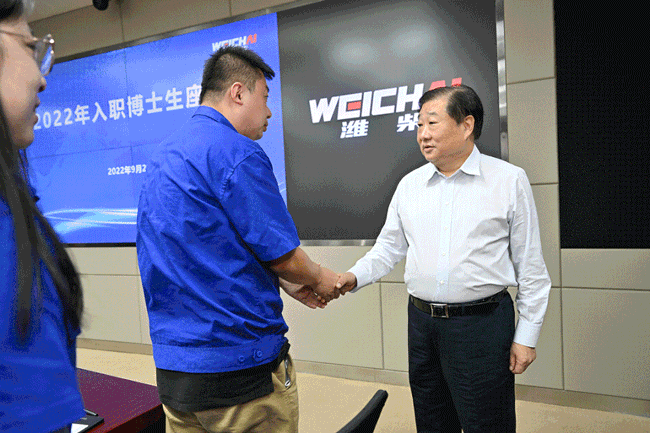 2022年9月21日上午9:00,谭旭光主持召开潍柴2022年入职博士生座谈会,谭旭光与现场30余名博士逐一握手并详细了解了入职博士的学习、工作和生活情况。