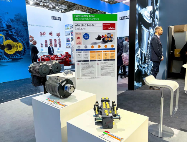 现场还展示了纯电驱装载机全套系统,包括行走系统和工作系统。林德液压为其提供工作系统主阀,同时高度集成电机和变速箱,成功为客户提供一体化解决方案。目前该电驱系统已实现配套销售。
