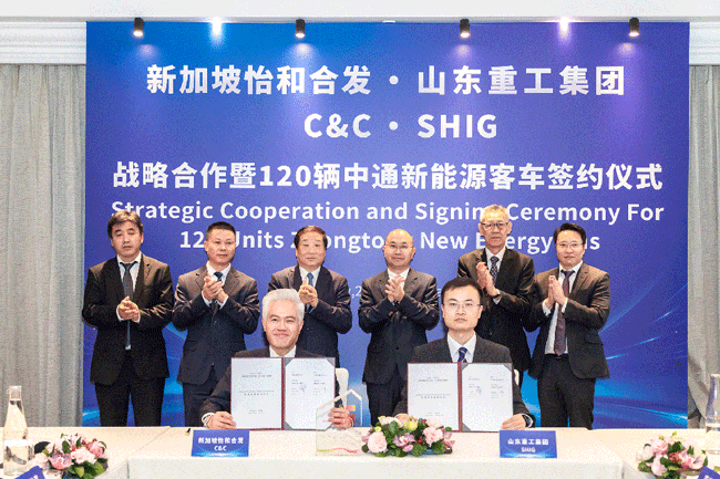 山东重工集团、旗下中通客车分别与新加坡怡和合发集团签署战略合作、客车采购协议。