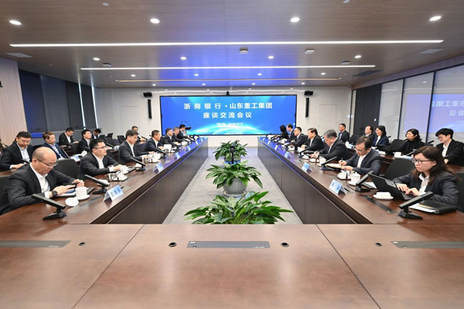 张荣森对山东重工长期以来的支持表示感谢,并介绍了浙商银行经营发展情况。他表示,山东重工作为国内汽车与装备制造行业的巨头,掌握世界领先的技术资源,在全球拥有重要影响力。浙商银行已与山东重工及其多家子公司开展合作,具有扎实的合作基础。希望双方进一步深化合作关系,整合各自资源优势,携手共享发展机遇,为中国制造业高质量发展提供金融助力。
