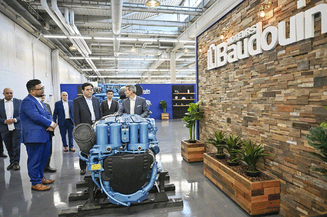 在法国考察期间,满慎刚先后来到博杜安公司和戛纳游艇展,与博杜安和法拉帝高管团队座谈交流,深入了解大缸径高端发动机和游艇业务开展情况。满慎刚全面考察了在戛纳游艇展参展的博杜安高速船艇动力系统解决方案、高端静音机组以及法拉帝各大品牌最新游艇产品,并参加法拉帝全球首发船型海试。