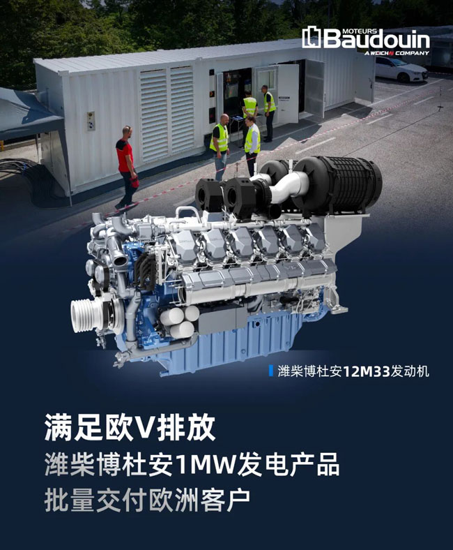 2025年以来,潍柴推出全系列满足欧V排放标准发电产品,可配套100~1000kW发电机组,一经投放市场深受客户欢迎。该项目客户批量采购1MW的博杜安12M33发动机和500kW的6M33发动机。客户表示:“多年合作证明,潍柴博杜安产品具有卓越环保性与稳定电力输出性能优势,为项目顺利推进提供了可靠保障。”