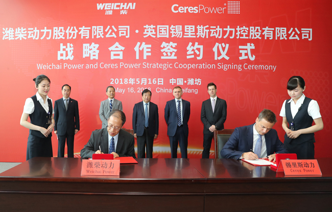 已经是最后一张了 已经是第一张了 0 / 0 2018年5月16日,潍柴动力与全球领先的固态氧化物燃料电池(SOFC)供应商英国锡里斯动力控股有限公司(Ceres Power)在山东潍坊签署战略合作协议。