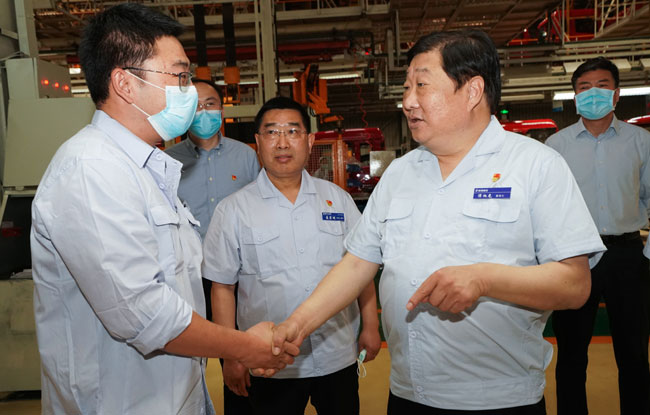 0 / 0 2020年5月2日,谭旭光专程来到潍柴动力在西安地区的企业,深入生产一线,看望慰问“五一”期间坚守工作岗位的干部员工。 谭旭光对西安地区企业领导干部提出的要求是,5、6、7三个月,各企业要拉得出、顶得上、打得赢,全力实现高产、高售、高质量发展! 谭旭光还到陕重汽、汉德车桥生产线考察调研,亲切看望一线员工。