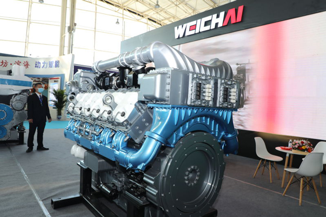 2021年10月,在以“向海进军 动力赋能”为主题的第三届潍坊国际海洋动力装备博览会上,潍柴携WH+M+N三大系列高端船舶动力重磅亮相。 展会现场,潍柴6WH17及12WH17两款WH系列高端船舶动力是全场的焦点。 潍柴博杜安12M55发动机作为M系列高端产品代表也吸引了众人目光。