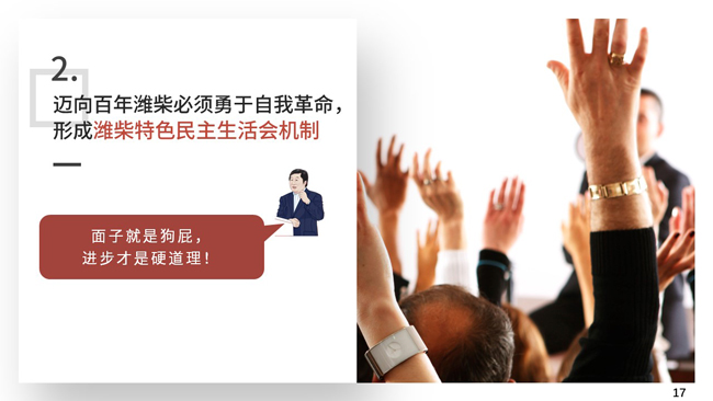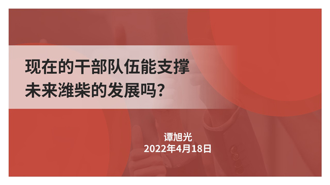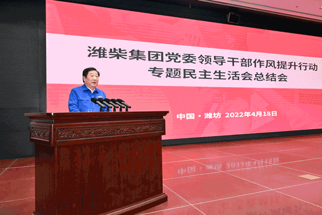 4月18日下午16:00,谭旭光主持召开潍柴集团领导干部作风提升行动专题民主生活会总结会,通报高管团队成员民主生活会情况,并作总结讲话。潍柴本部及各子公司助理级以上领导干部400余人通过“线上+线下”形式参会。