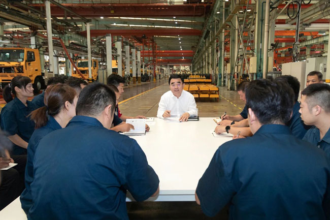 宣讲后,满慎刚到中国重汽济南特种车公司调研,与基层党务工作者、一线工匠技师座谈交流,面对面传达党的二十届三中全会精神,深入了解基层党组织建设、生产经营、人才培养、员工服务保障等工作。