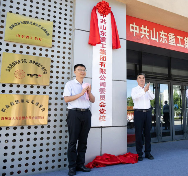 9月6日上午,山东重工集团党校揭牌仪式在潍柴职业大学举行。山东省委党校(山东行政学院)副校(院)长林学启,山东重工集团党委副书记、党校校长叶建军共同为“中共山东重工集团有限公司委员会党校”揭牌并致辞。
